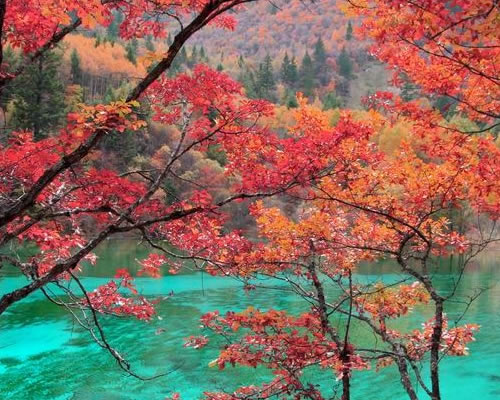 秋天里的九寨沟九寨沟的活水泉又异常洁净,加之梯形状的湖泊层层过滤,其水色愈加透明,能见度高达20米。翠海、叠瀑、彩林、雪峰、藏情,被誉为九寨沟“五绝”。水乳交融,美不胜收。九寨沟在60年代的时候是126、127两个林场的砍伐地。1960年毛主席发出号召要支援边远的山区,由此由平原一带的人们响应号召分别走进阿坝州,甘孜州及凉山州进行三线建设,也开发森林。九寨沟被砍伐了6年,66年“文化大革命”爆发人们开的会很多,这时九寨沟得以停砍10年,生态得到了一些恢复。 文化大革命之后,1975年农牧渔业部的一个工作组对九寨沟进行了综合考察,并得出了“九寨沟不仅蕴藏了丰富、珍贵的动植物资源,也是世界上少有的优美风景区”的结论。同年,中国林科院院长,著名的林学家吴中伦教授对九寨沟进行了全面的考察。吴教授身临其境,感慨万分的说:“我到过欧美数国,也从未见过这样的奇美的自然景观,必须好好的保护起来。”他立即上书到四川省政府、并告知省林业厅。省林业厅十分重视,立即通知南坪林业局:九寨沟200米以外才能砍伐,这是林业部门保护九寨沟最早的一个措施。1977年四川省珍贵动物资源调查队写入了《四川珍贵动物资源调查报告》,1978年11月30日有关部门下令停止在九寨沟采伐木材。1979年两个林场迁了出来,1980年,九寨沟自然保护处成立,游客也越来越多。