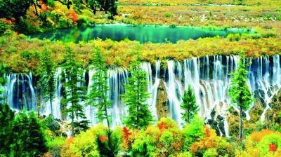 目前九寨沟的森林已呈现出红、黄、绿的斑斓色彩,正适宜观赏。