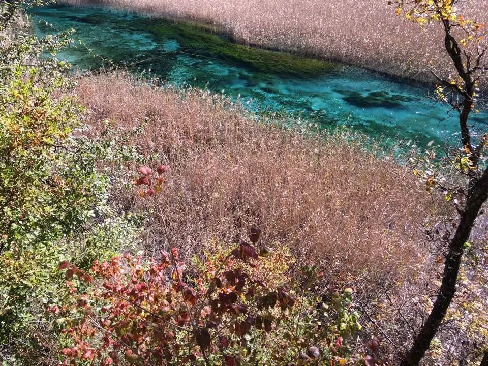 秋:秋天是九寨沟最为灿烂的季节,五彩斑谰的红叶,彩林倒映在明丽的湖水中。缤纷的落英在湖光流韵间漂浮。悠远的晴空湛蓝而碧净,自然自造化中最美丽的景致充盈眼底。
